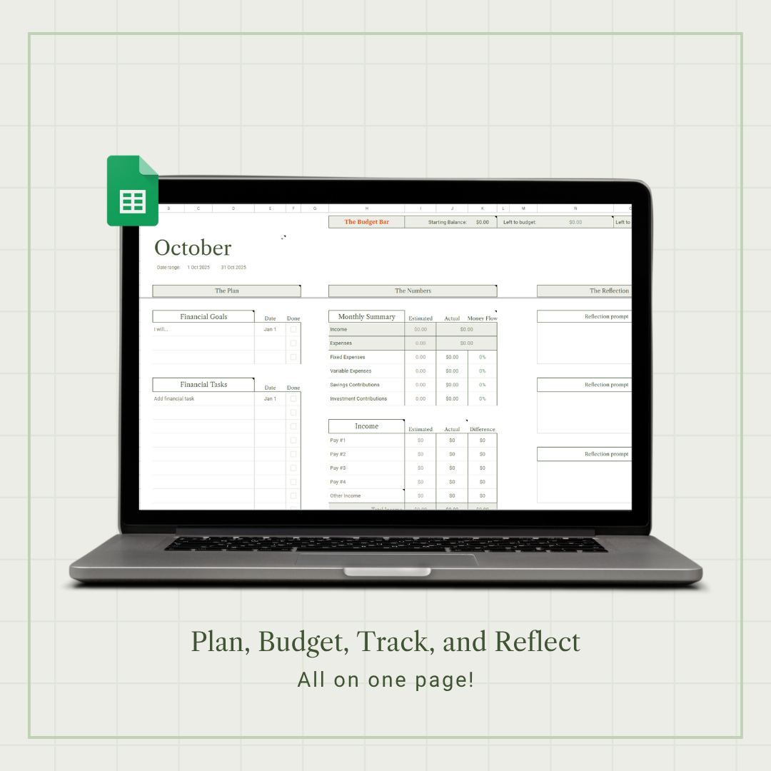 Take control of your finances with the Financial Planner & Tracker, a unique digital spreadsheet that lets you plan, budget, track, and reflect on your monthly finances all in one place.